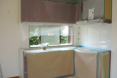 キッチンもまだカバーがついたままで、