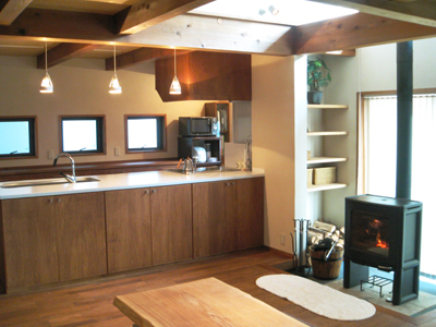 薪ストーブと吹き抜けが特徴的で、木がふんだんに使われているお家でした
