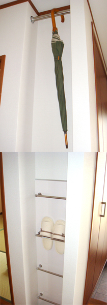 玄関にはスリッパ&傘ハンガー